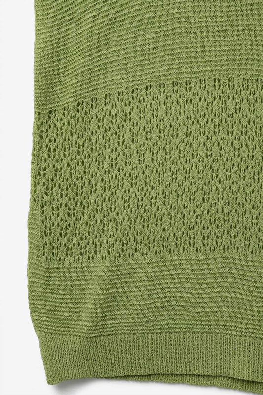 Maglione verde a maniche corte con dettaglio di linee bianche