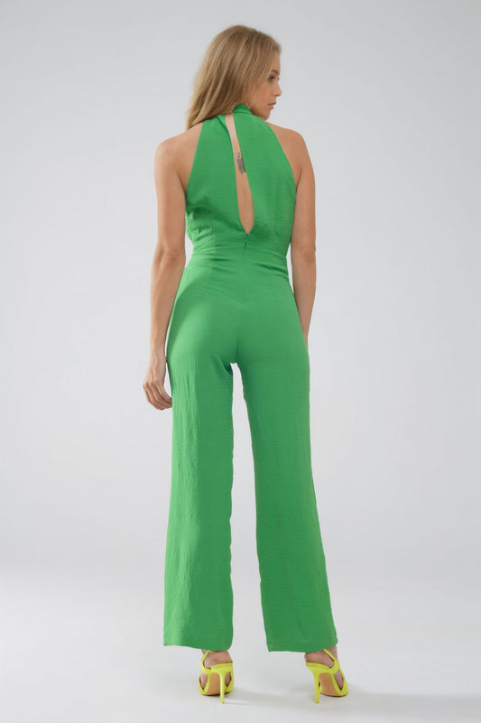 Tuta senza maniche con dettaglio zip e cintura in color kaki