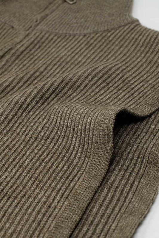Maglione verde senza maniche a collo alto con chiusura a zip