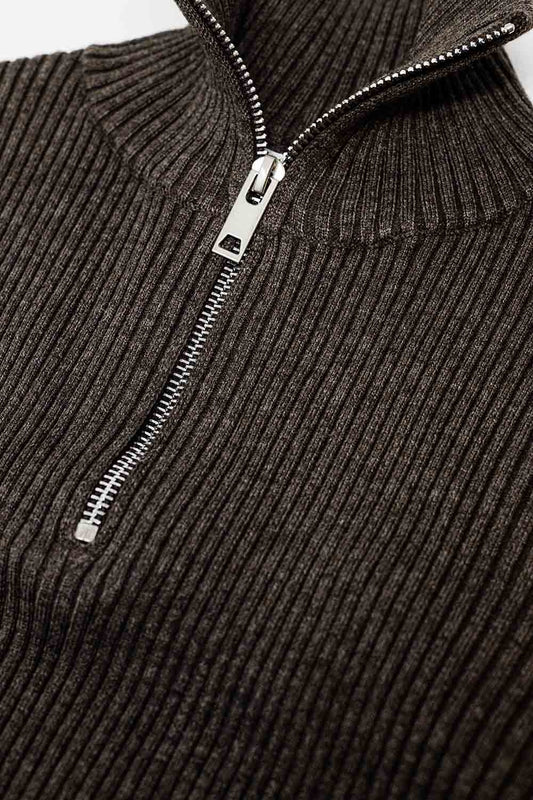 Maglione grigio senza maniche a collo alto con chiusura a zip
