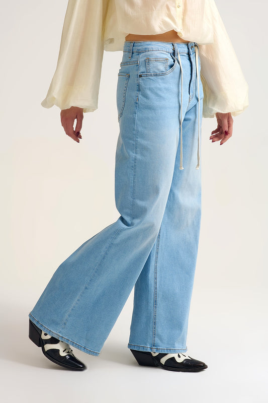 Jeans a gamba larga con lavaggio chiaro e coulisse regolabile in vita