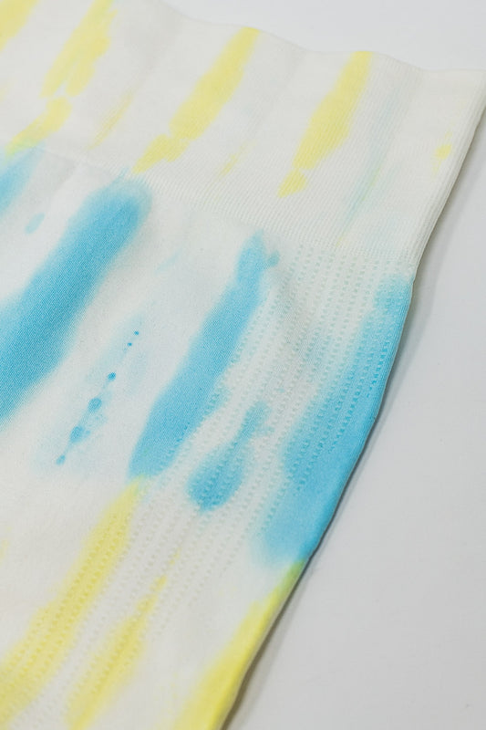 Leggings bianchi Tie-Dye a coste senza cuciture