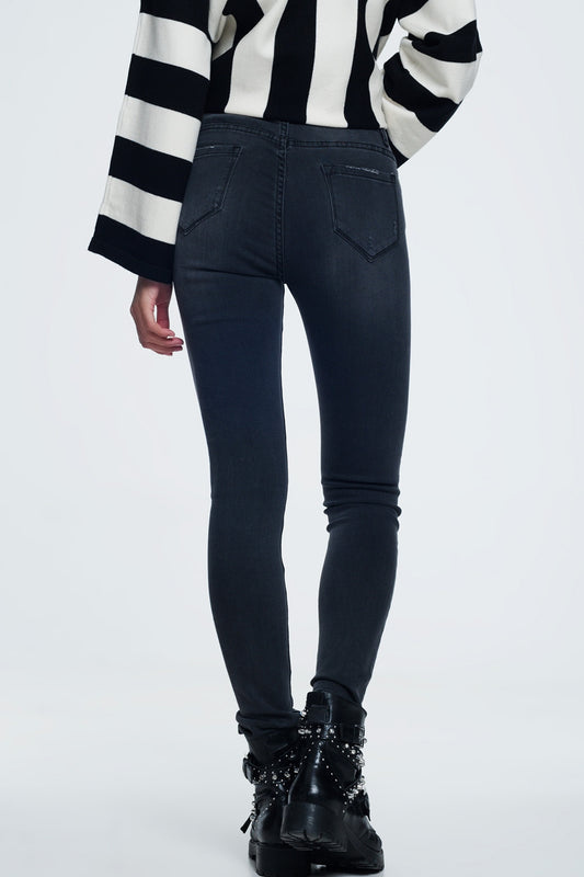 Jeans skinny grigi con strisce