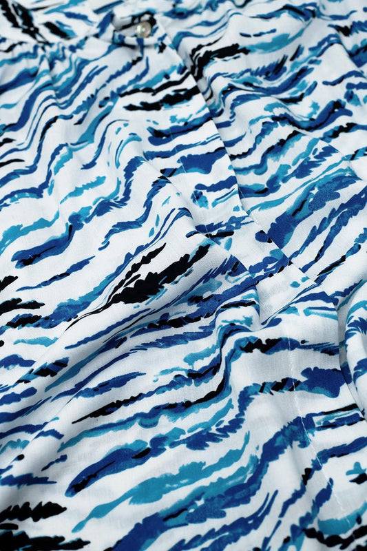 Camicetta bianca con stampa animalier blu e maniche lunghe