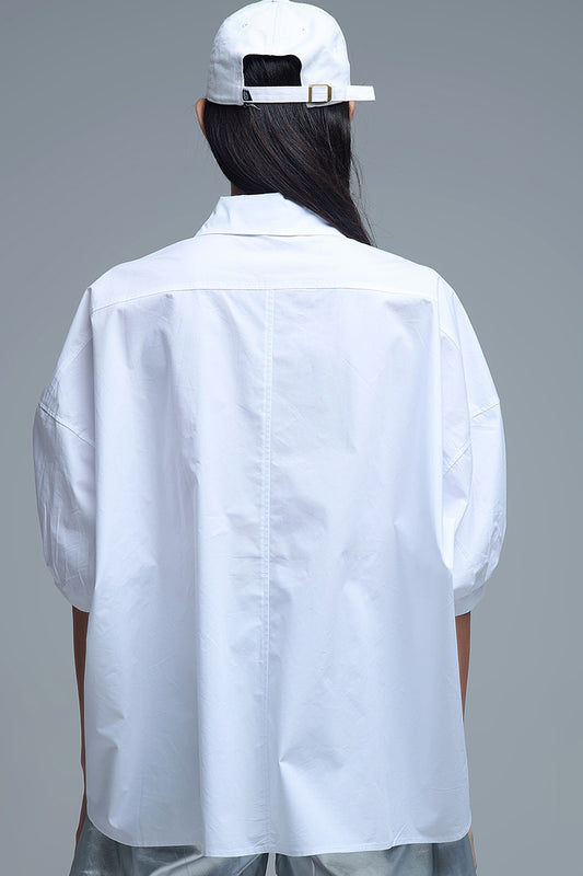 Camicia rilassata in popeline con maniche a 3/4 e bottoni in bianco