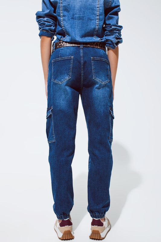 Jeans Cargo con cucitura sul davanti in lavaggio medio