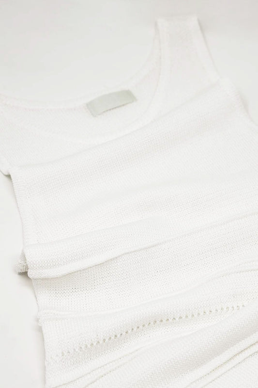 Maxi abito bianco in maglia senza maniche all'uncinetto