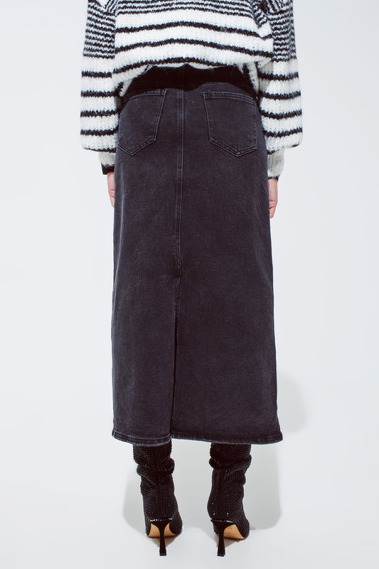 Maxi gonna in denim nero con spacco sul retro