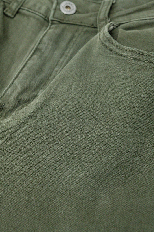 Pantaloni a gamba larga in tessuto di cotone leggero di colore verde
