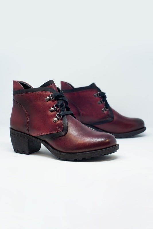 Stivaletti bordeaux con tacco medio bloccati con punta tonda