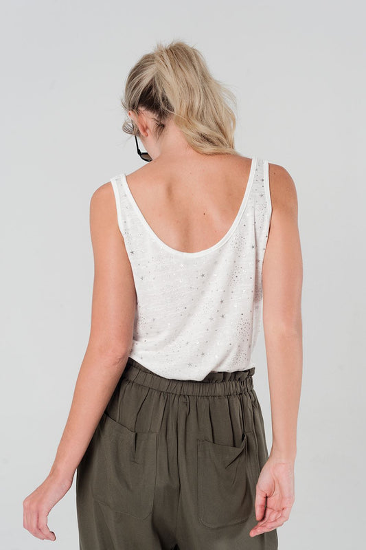 T-shirt bianca rilassata con disegno di un cuore sul davanti e sul retro.