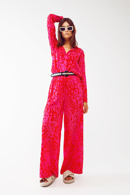 Camicia con Bottoni in Stampa Leopardata Fucsia