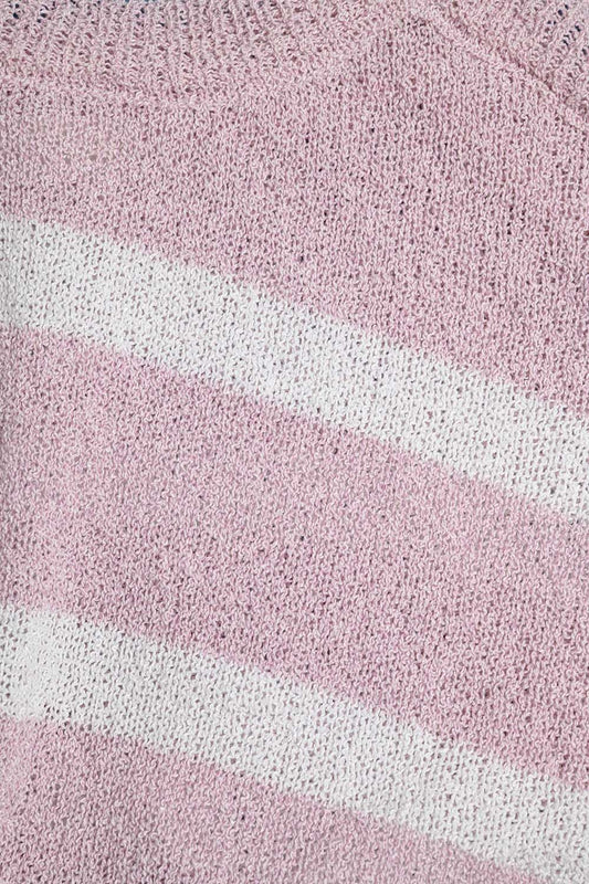 Maglia Heather con Spalle Scoperte e Righe Orizzontali in Rosa