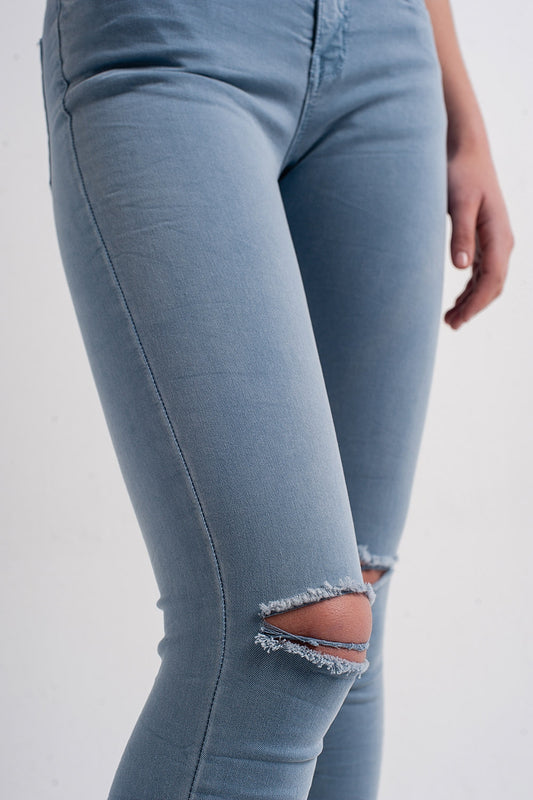 Jeans skinny blu con strappi sulle ginocchia