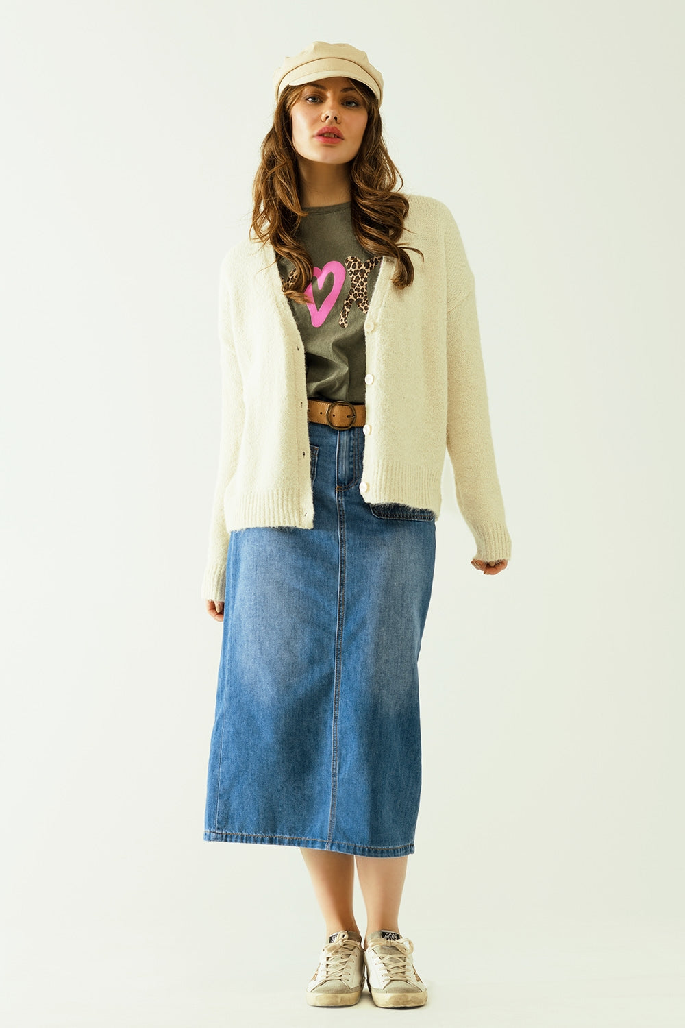 Cardigan a maniche lunghe color crema con chiusura frontale con bottoni