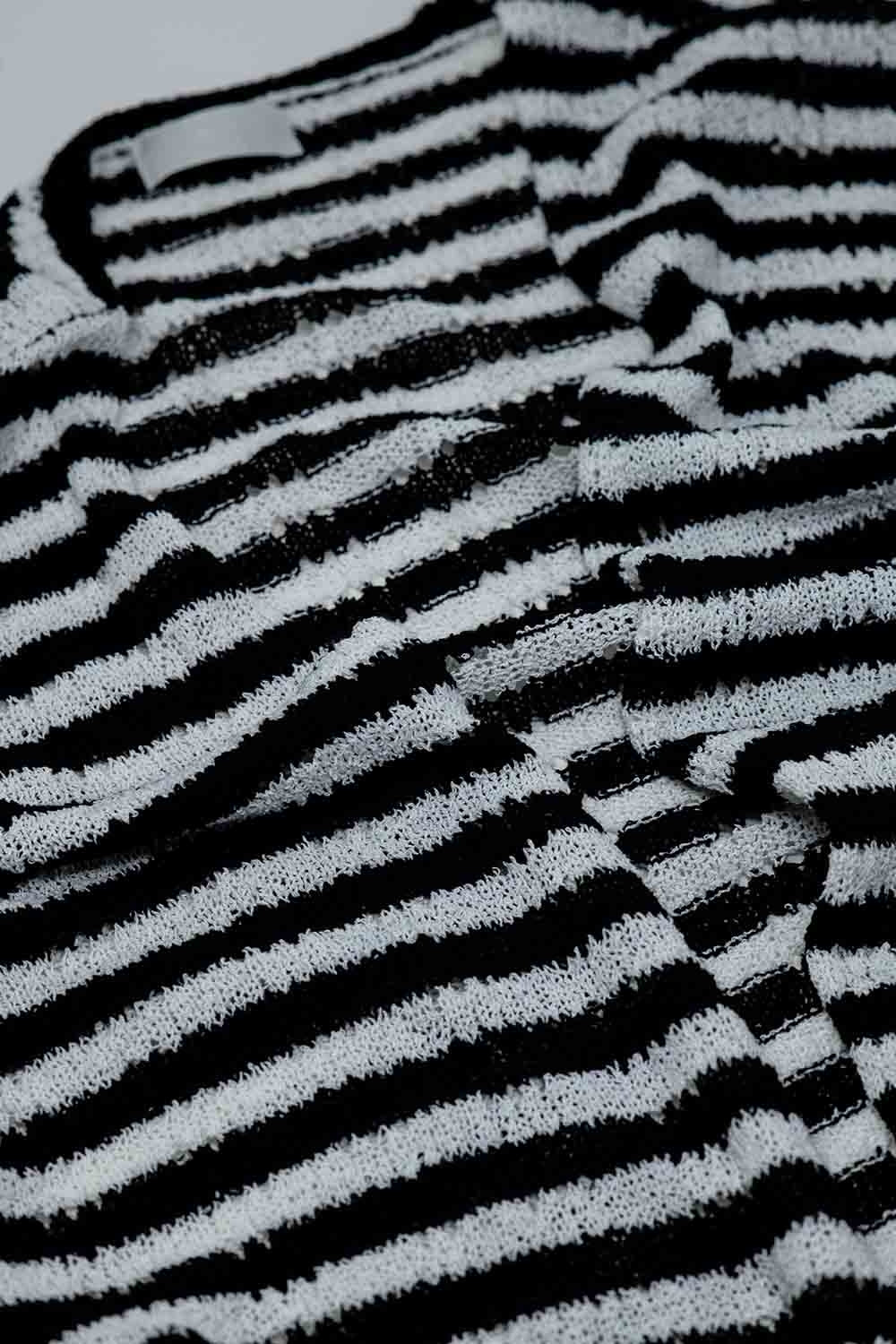 Cardigan nero in stile bohémien con maglia a righe e frange
