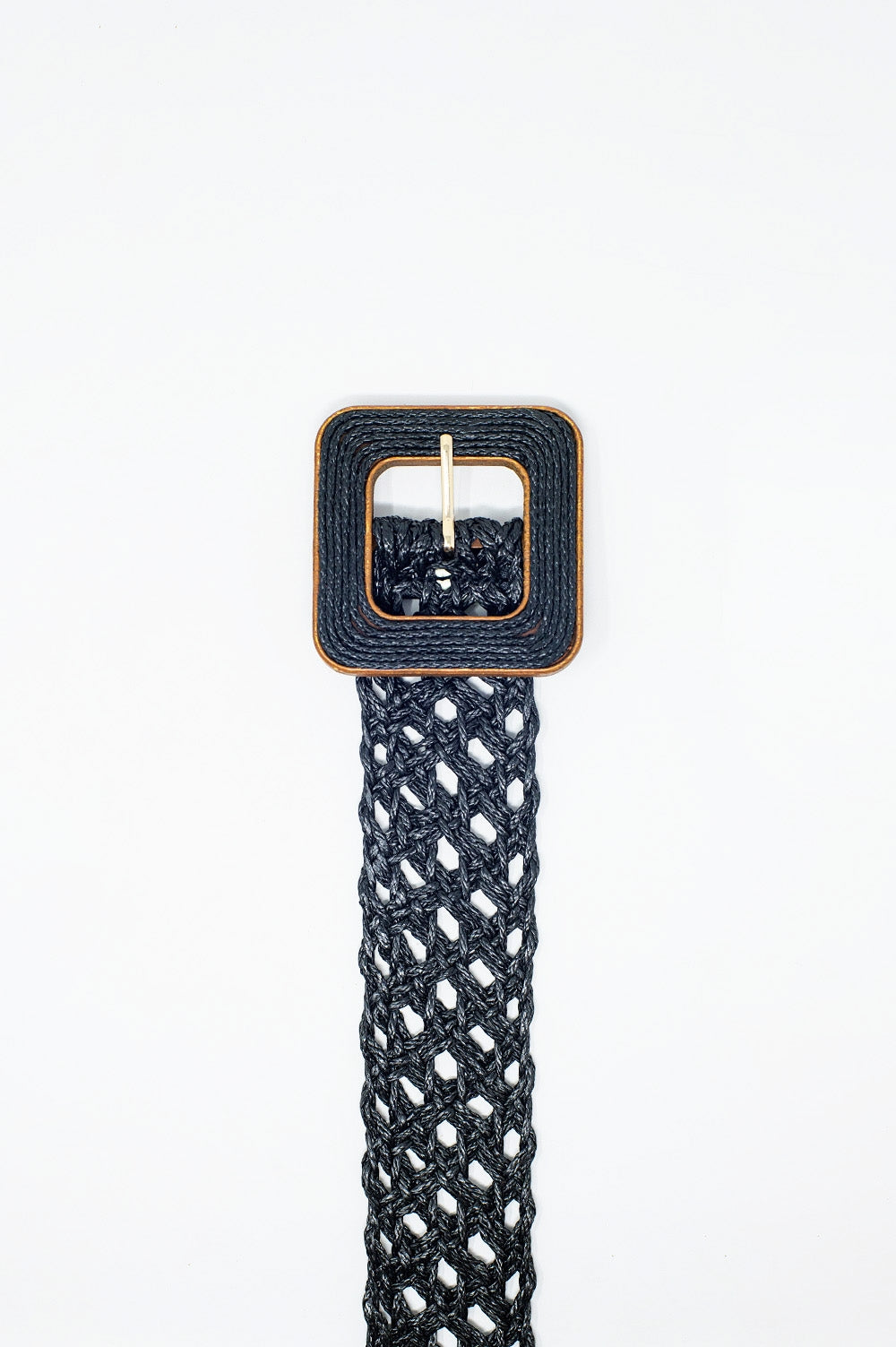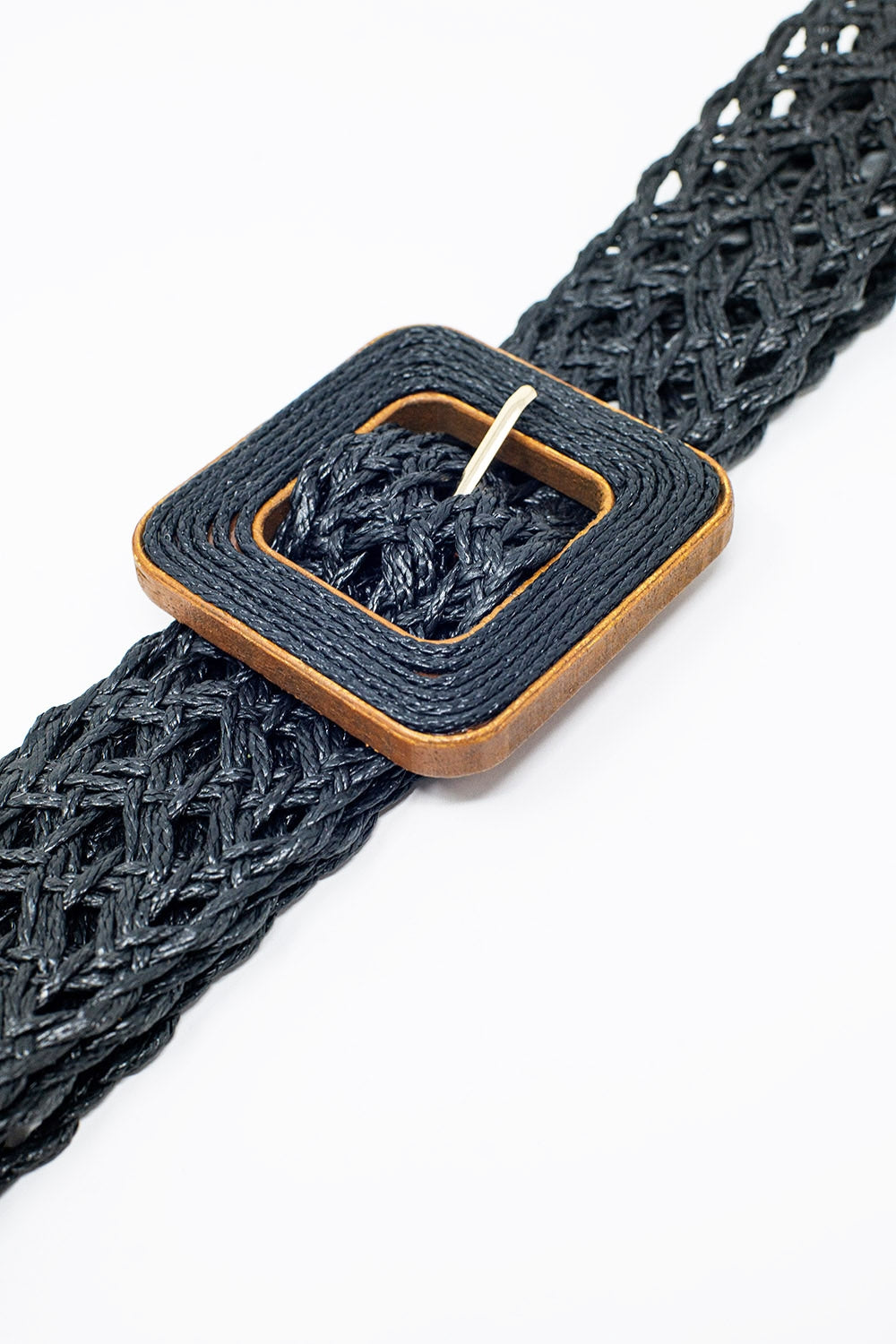 Cintura nera intrecciata con fibbia quadrata con bordo marrone