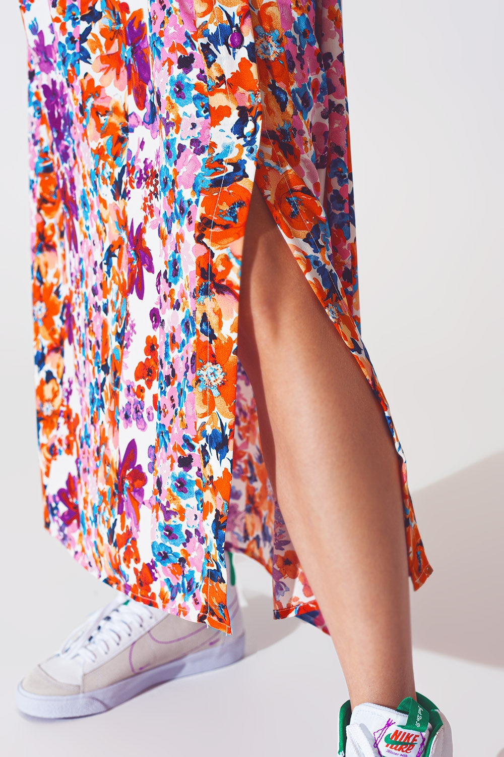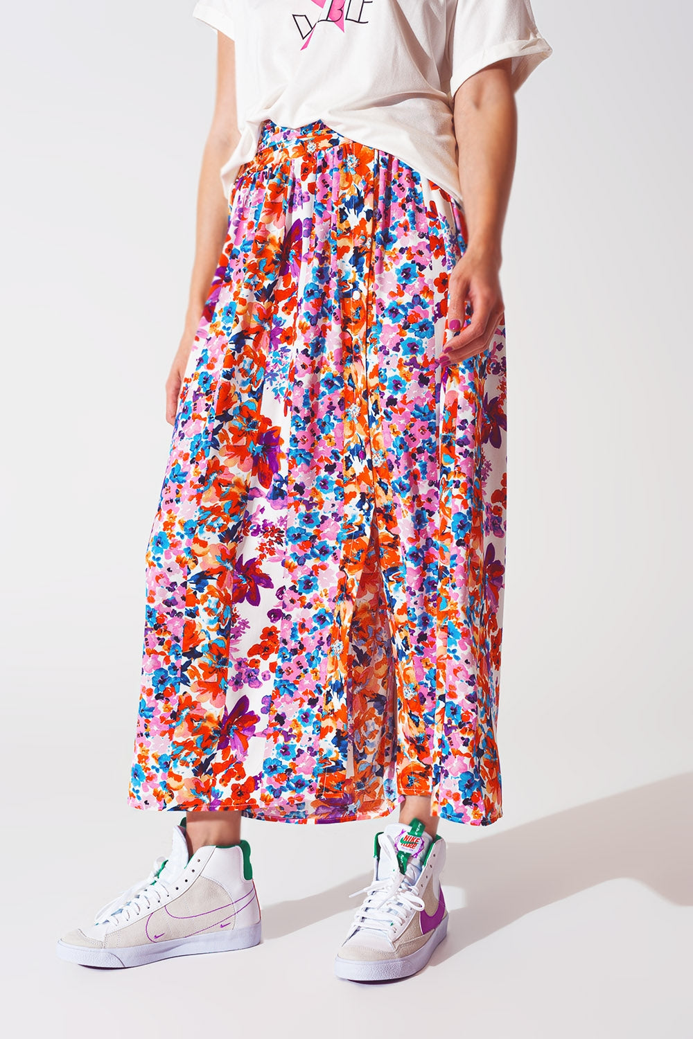 Gonna midi plissettata a stampa floreale