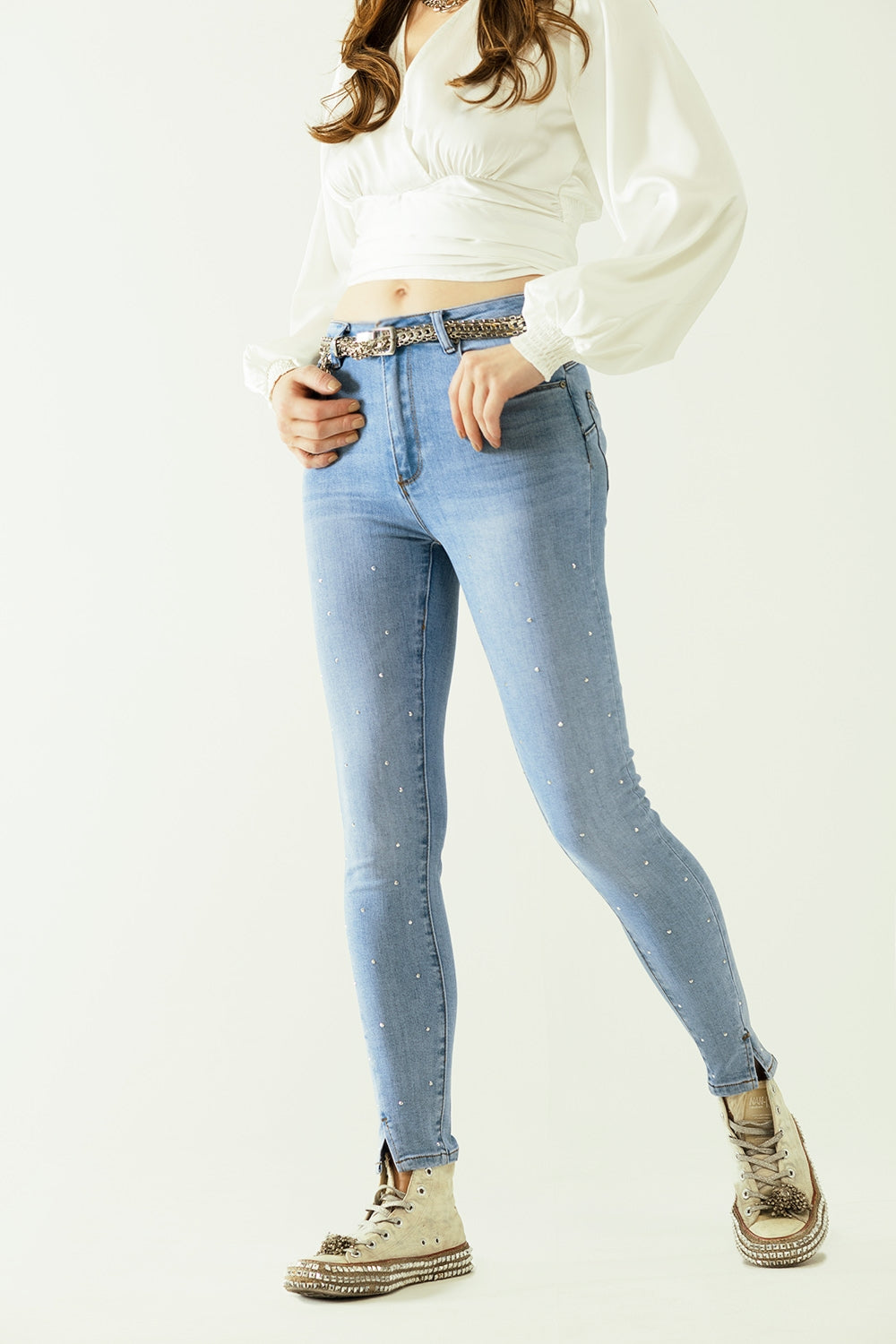 Sotto Categoria: Jeans. Modello: Vestibilità Skinny. Gamba: Skinny. stile: Modello festa. Tipo di jeans: Jeans push up. dettaglio: Con strass. Tessuto: Denim elasticizzato. Tasche: Cinque tasche. Chiusura : Chiusura con zip. runs small. S.