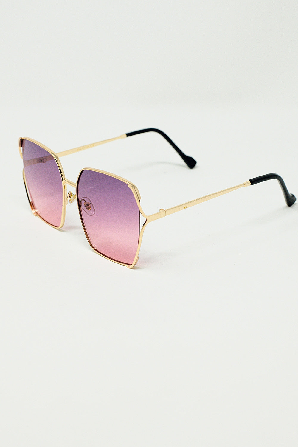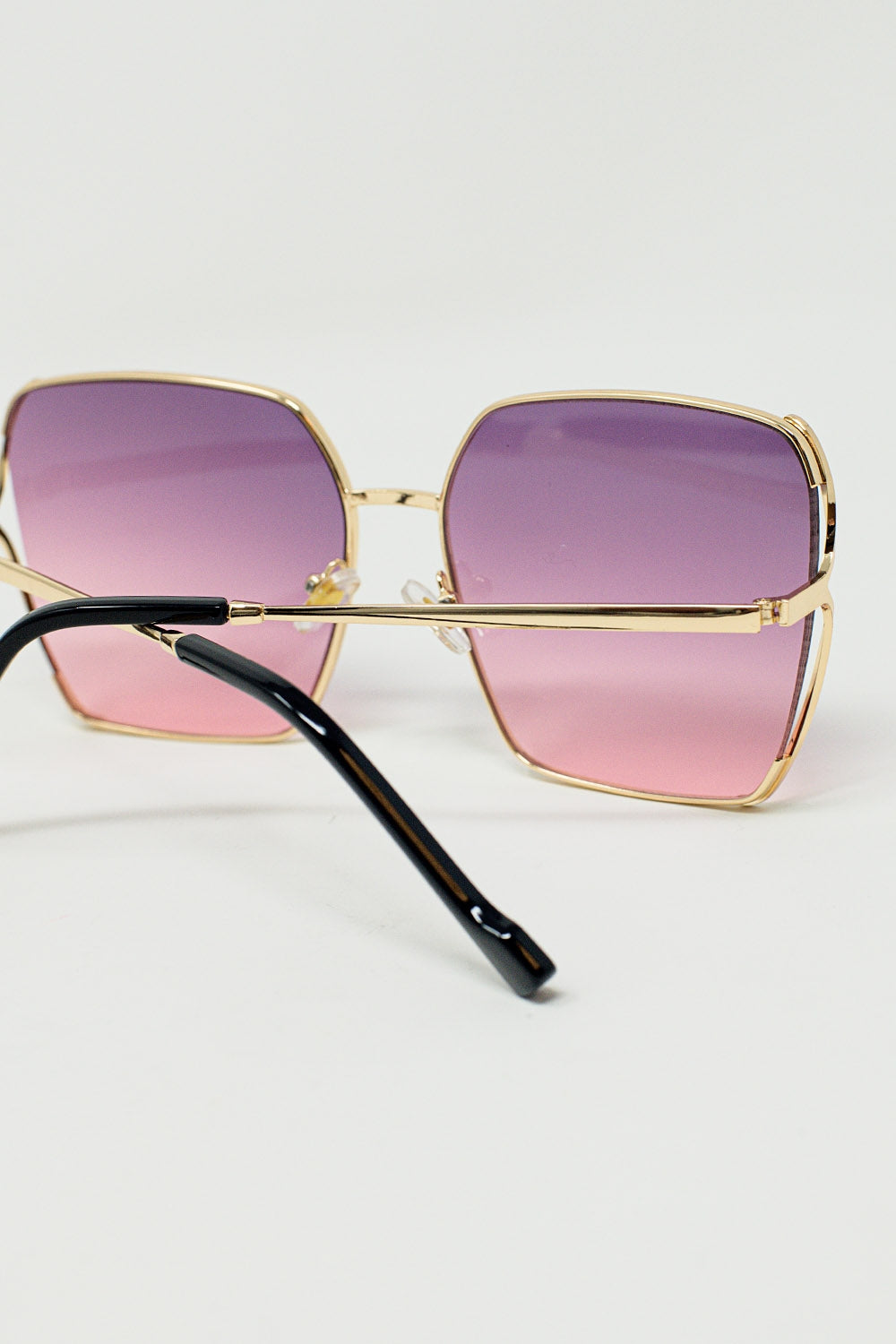 Occhiali da sole quadrati oversize in metallo con lenti viola sfumate