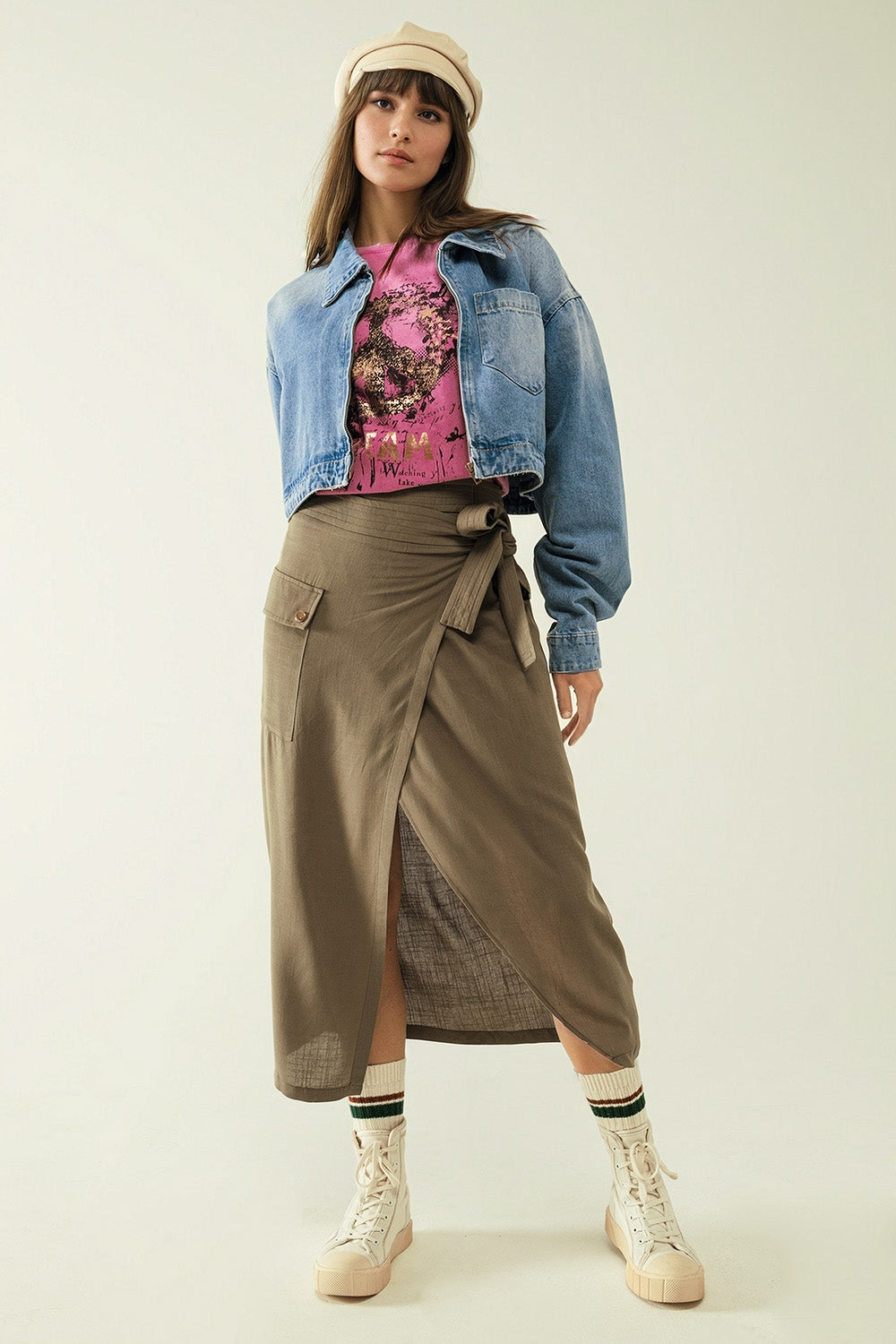 T-shirt a maniche corte con grafica Peace Sign sul davanti in fucsia