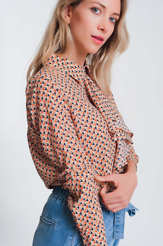 Blusa con stampa cachemire e bordi a reticolo grigio