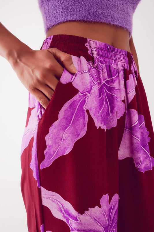 Pantaloni dritti fucsia con stampa astratta a fiori
