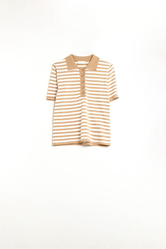 Polo a righe con bottoni in beige