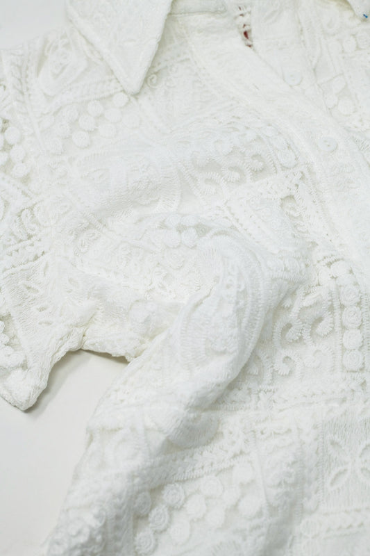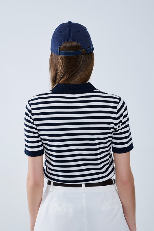 Polo bianca a maniche corte con righe azzurre e dettagli con bottoni frontali