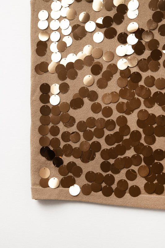 Top in maglia senza maniche con spalle drappeggiate in cammello