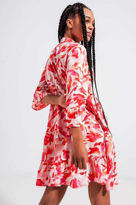Vestito corto a portafoglio rosa a fiorellini con volant
