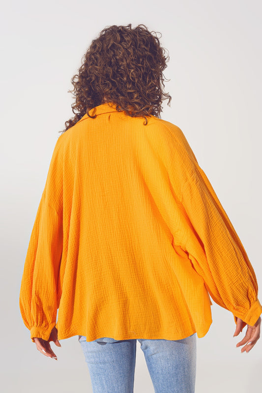 Camicia basic in popeline arancione con maniche lunghe a palloncino