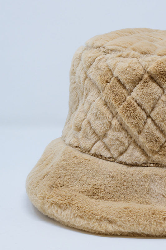 Cappello bucket trapuntato in ecopelliccia beige
