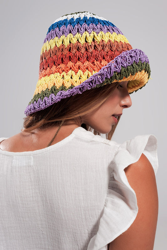 Cappello da pescatore in paglia all'uncinetto color arcobaleno
