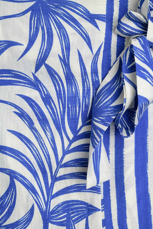 Gonna midi in tessuto leggero con motivi tropicali in blu e bianco