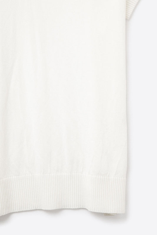 Top a manica corta in maglia fine tipo Polo in bianco