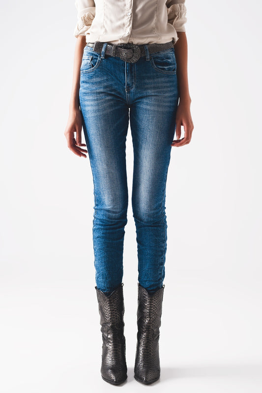 Jeans dritti con strappi sulle ginocchia lavaggio azzurro
