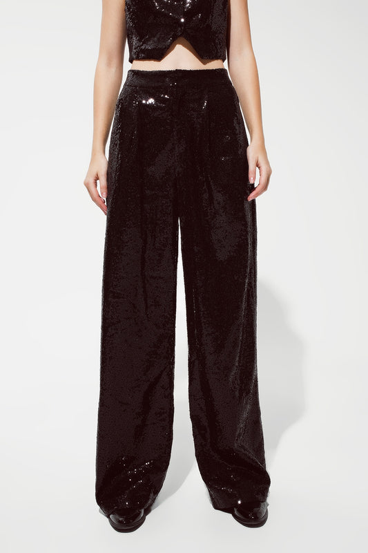 Pantaloni neri con paillettes e gambe svasate