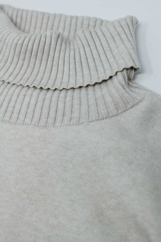 Maxi abito a collo alto color kaki con dettagli di cucitura