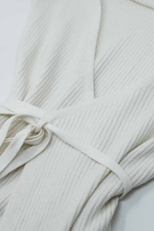 Maxi abito panna con scollo ad aletta e dettagli in cucitura
