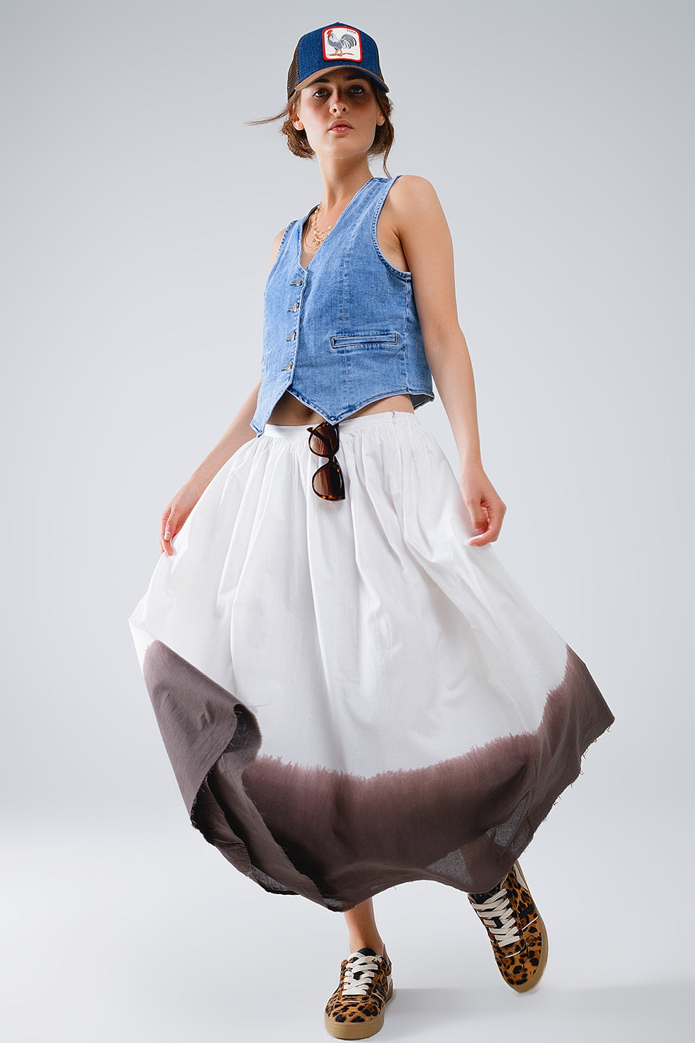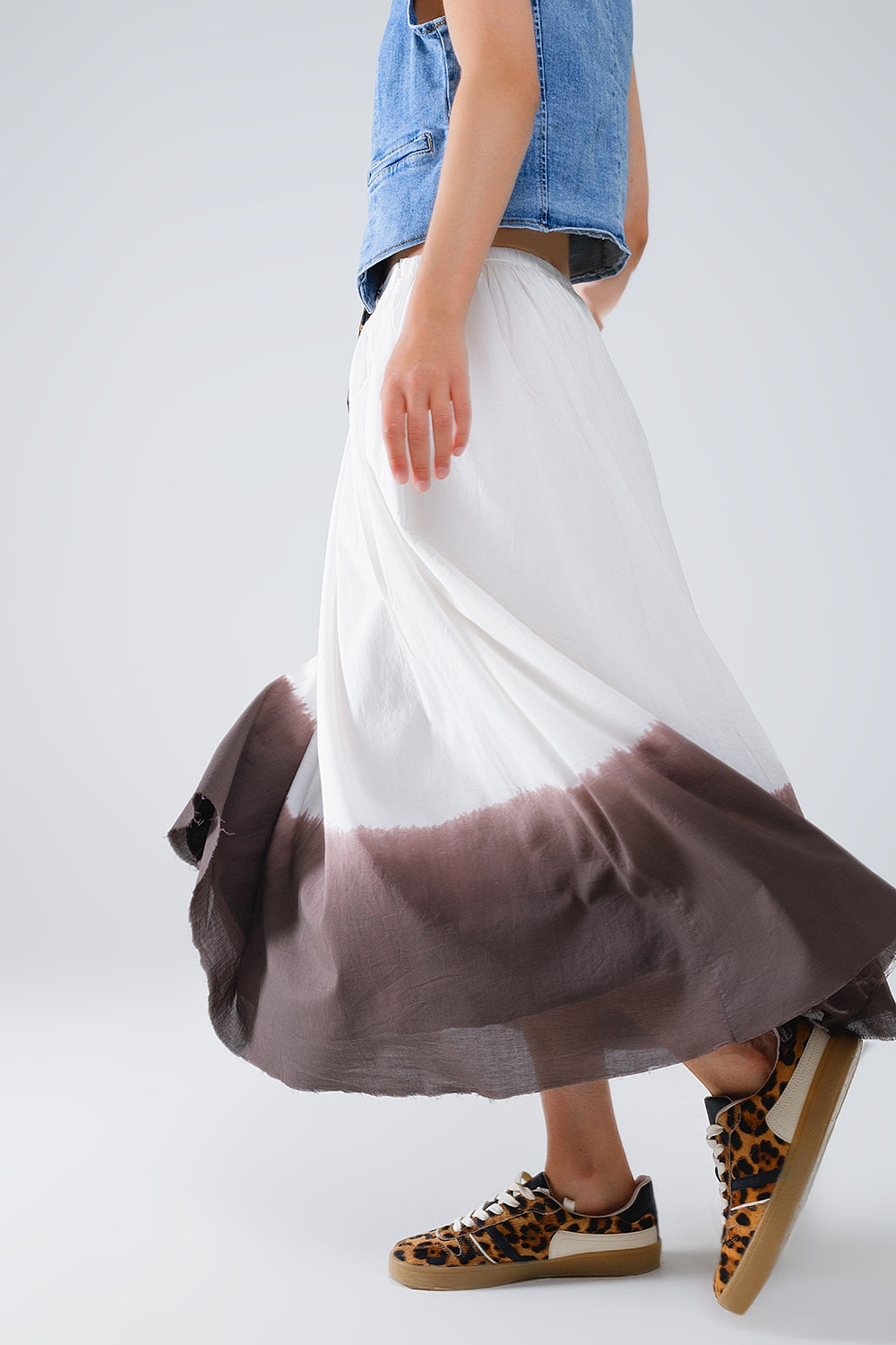 Gonna bianca a vita bassa con dettaglio marrone Ombre