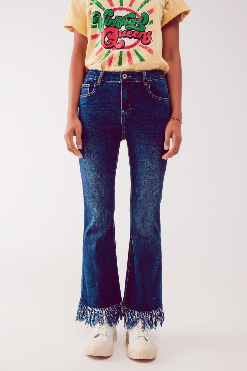 Sotto Categoria: Jeans. Modello: Taglio a zampa. Gamba: A zampa. stile: Modello Casual. Tipo di jeans: Basic. dettaglio: Orlo a frange . Tessuto: Denim elasticizzato. Tasche: Cinque tasche. Chiusura : Chiusura con zip. Bordo : Orlo sfrangiato. Dettagli del prodotto: Tasche pratiche. runs true to size. S.