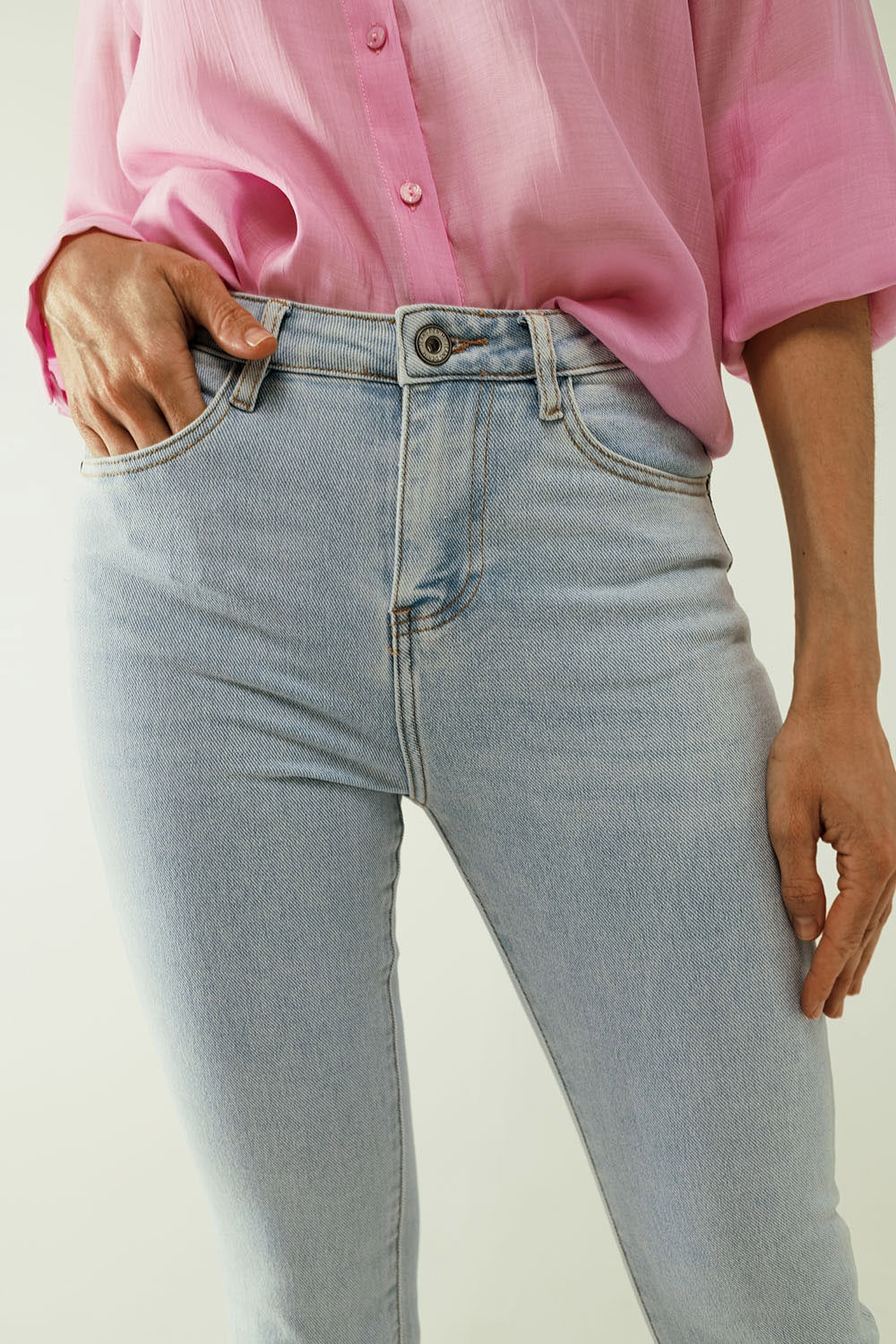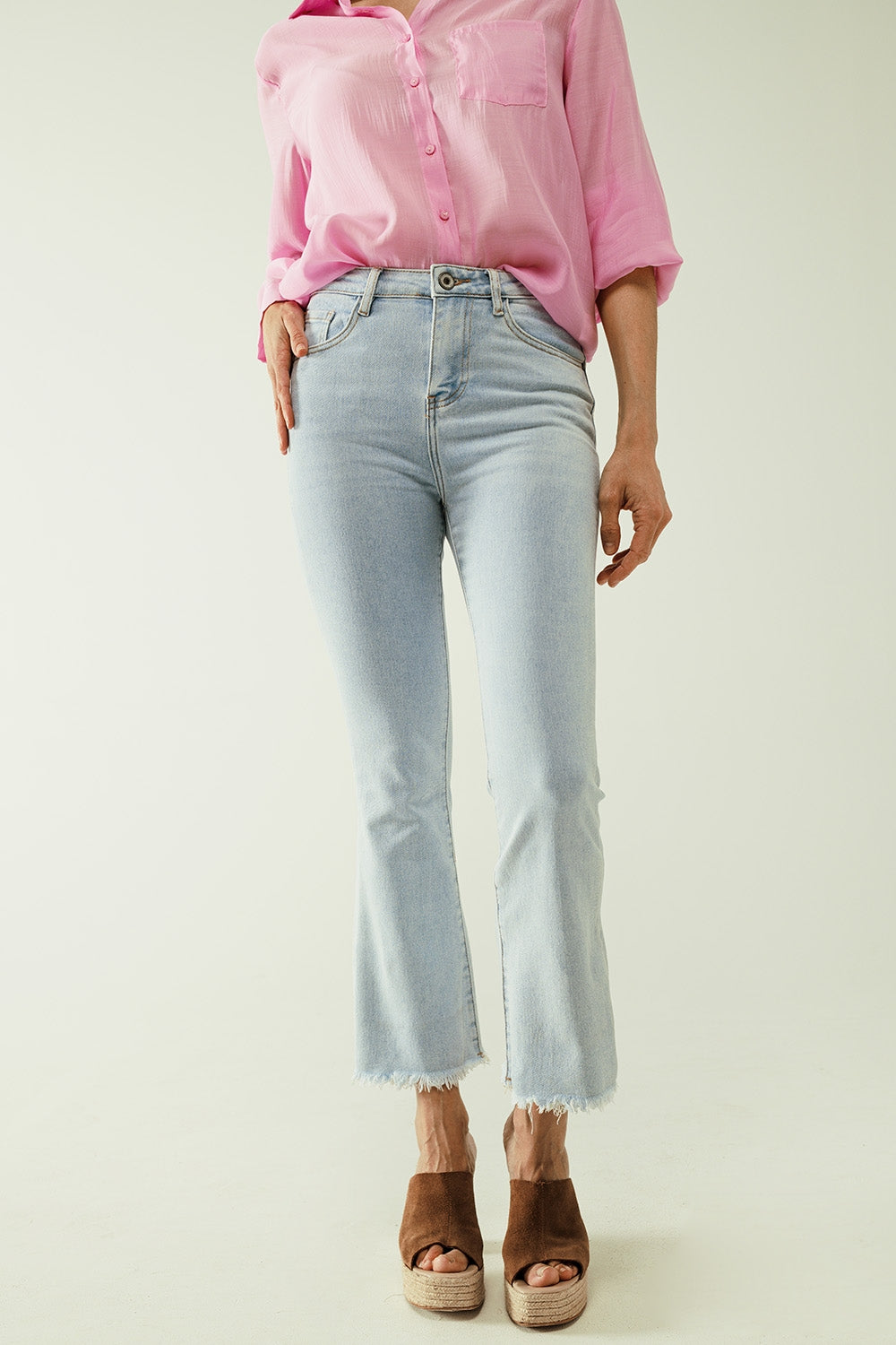 Jeans svasati di colore blu chiaro con cinque tasche e finitura senza cuciture