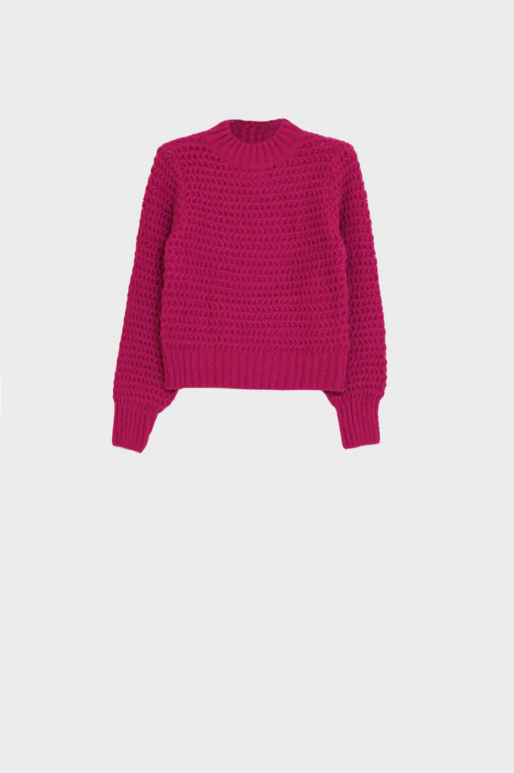 Maglia rilassata in maglia waffle con collo alto in rosso