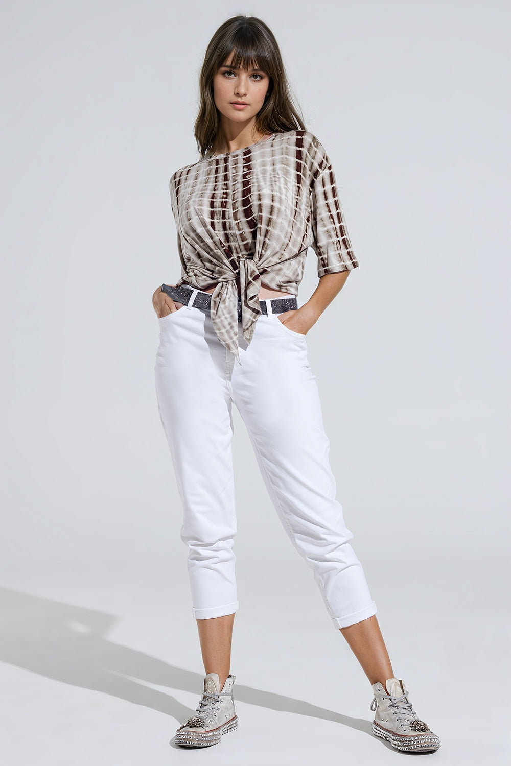 Maglietta stampata Tie Dye color kaki con nodo sul davanti