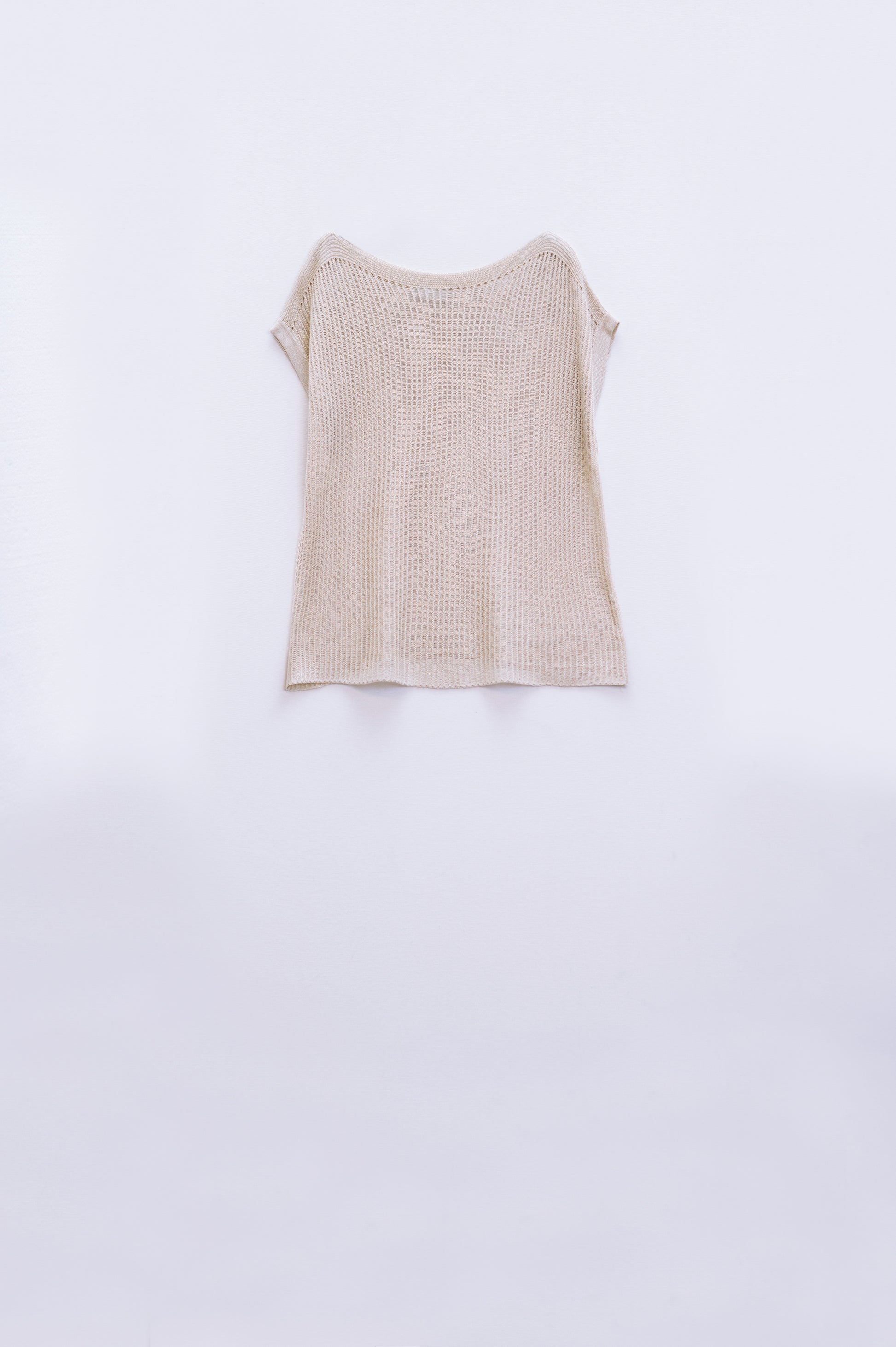 Maglione a coste con scollo a barca e maniche a cappuccio in beige