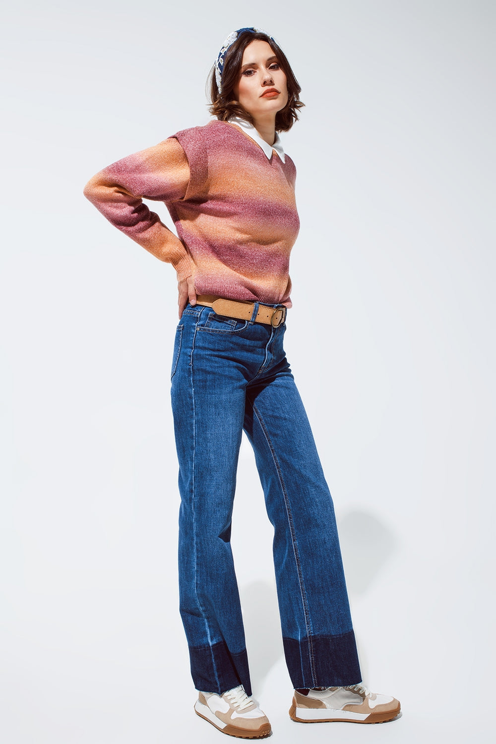 Maglione con design ombreggiato arancione e rosso con scollo rotondo e dettagli sulle maniche