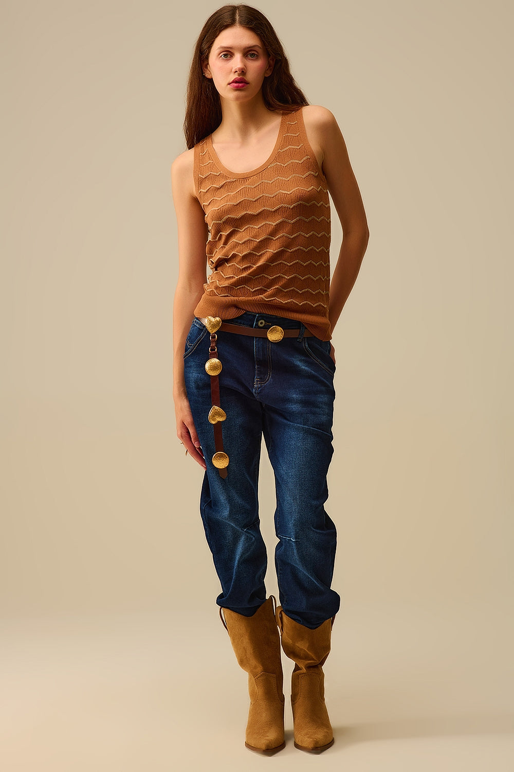 Maglione lavorato a maglia con motivo a zig zag dorato