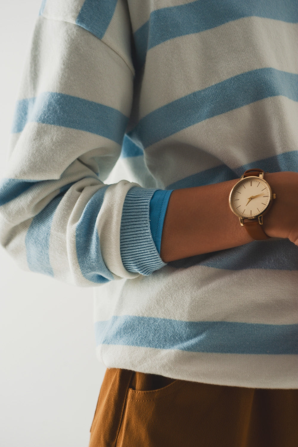 Sotto Categoria: Maglione. Collo: Girocollo. Manica: Manica lunga. Stampa: Motivo a righe. Modello: Vestibilità comoda. stile: Modello Giornaliero. Tessuto: Maglia leggera. runs true to size. S.