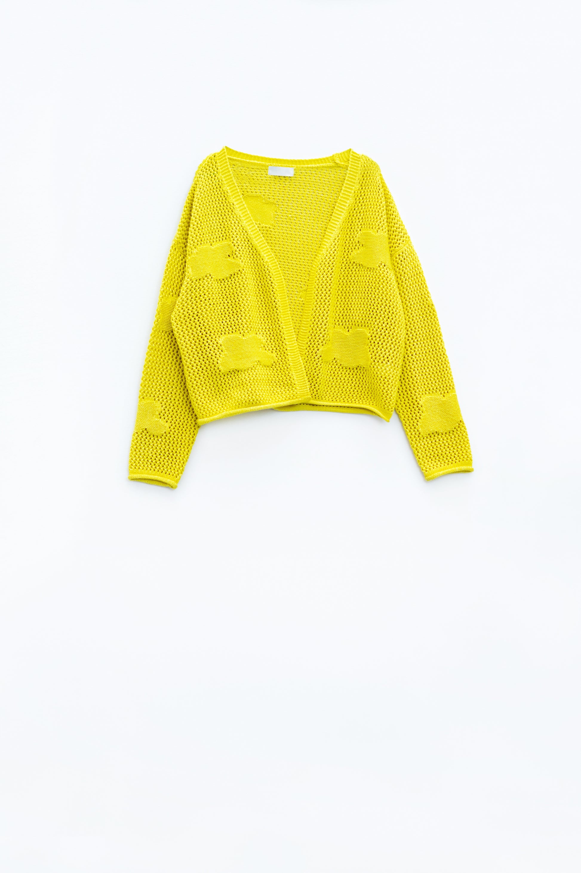 Cardigan all'uncinetto con nuvole lavorate a maglia in giallo